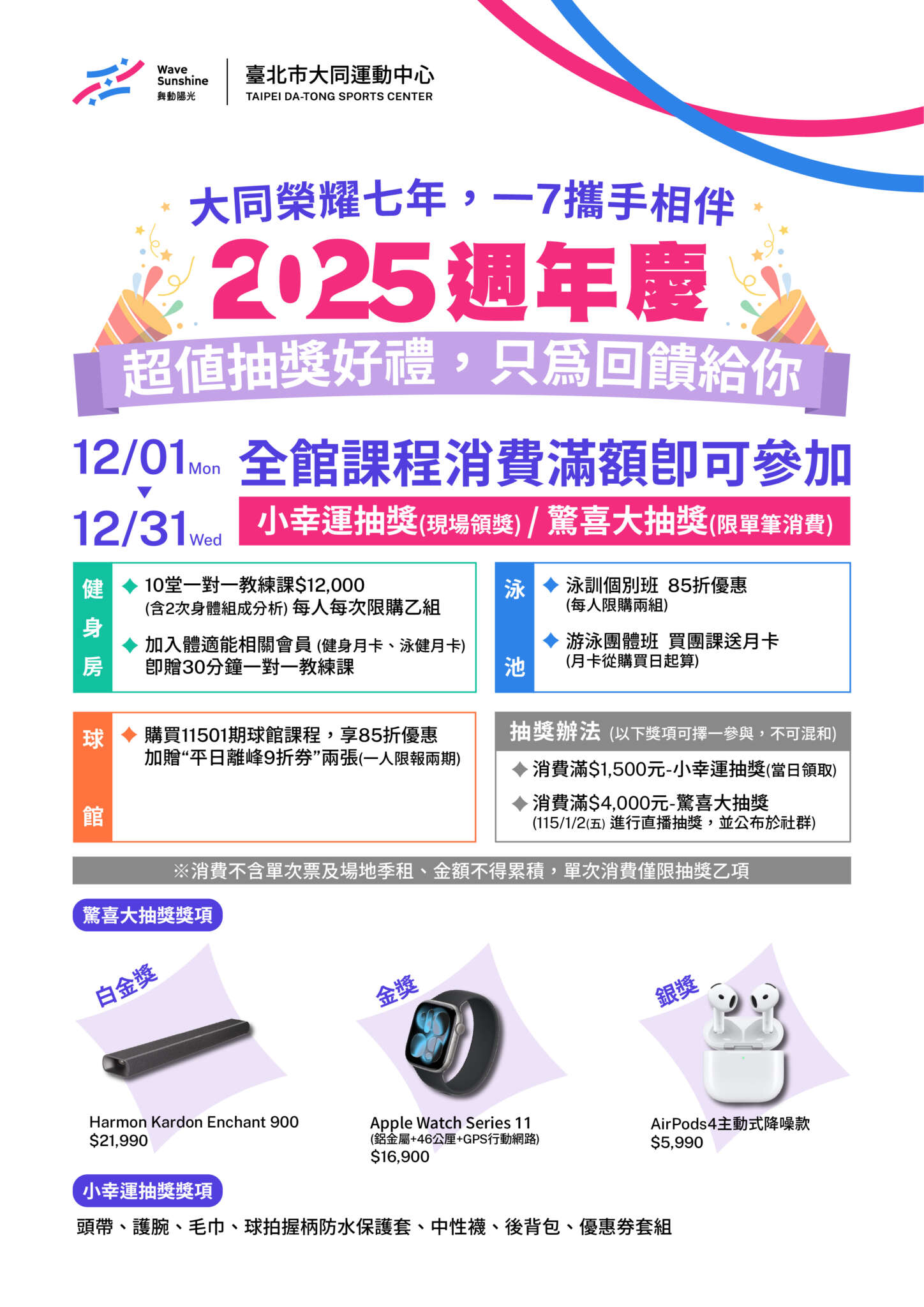 𝟏𝟐/𝟏–𝟏𝟐/𝟑𝟏 全館課程消費滿額即可參加抽獎!
